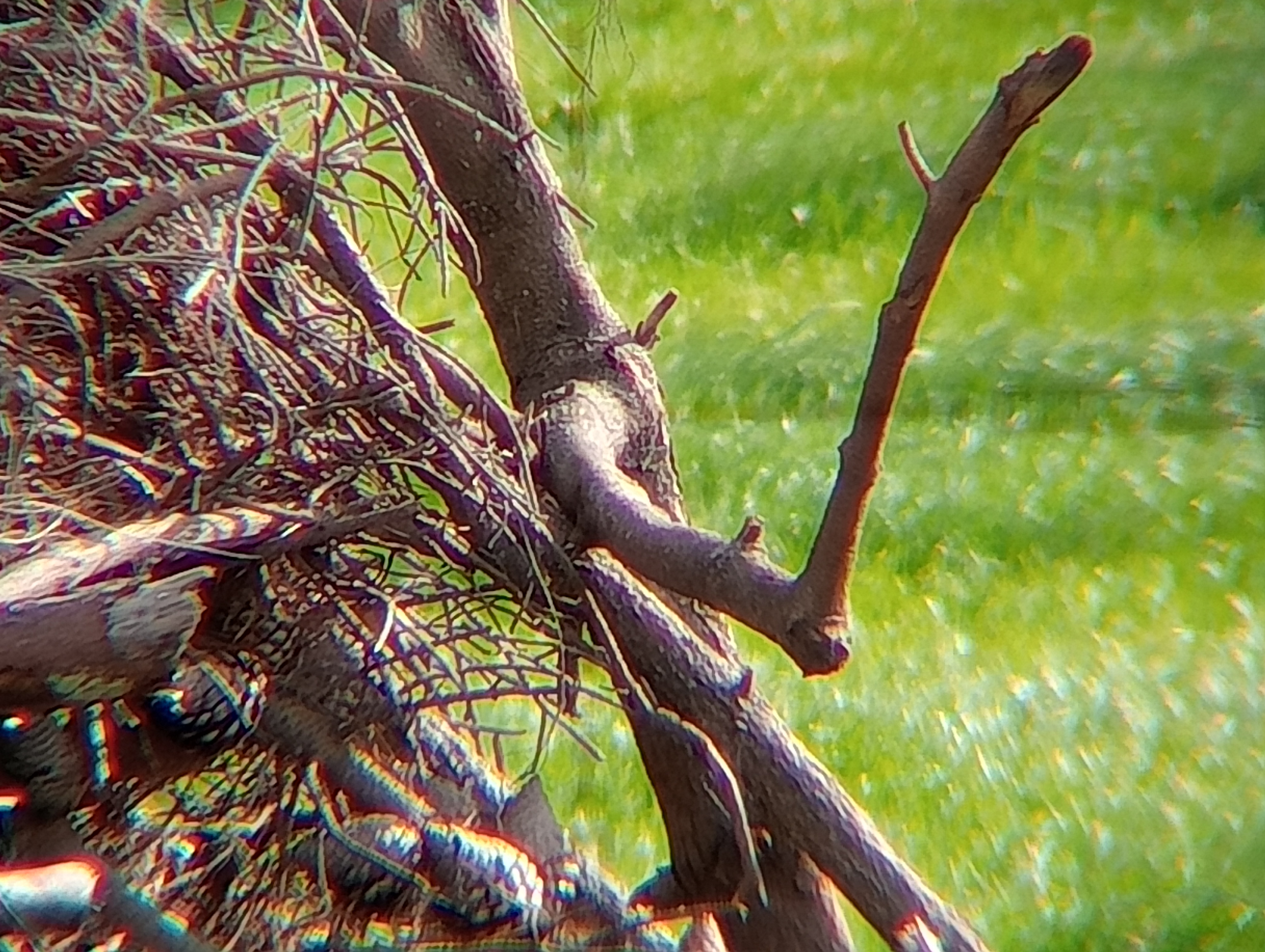 Twin cameras. Top camera. I.e standard photo. Approx 56m. 18x zoom scope. 3 times zoom camera. Windy, grass constantly moving so branch focal. Didn't bother with getting a super fine adjustment as just to show twin cameras work. Perplexed as to why the cross hairs dont show up in photo. You can see them on the screen but don't show up on photo. I have no idea why that is. It should by my logic. ![]() Holder on rifle ![]() |