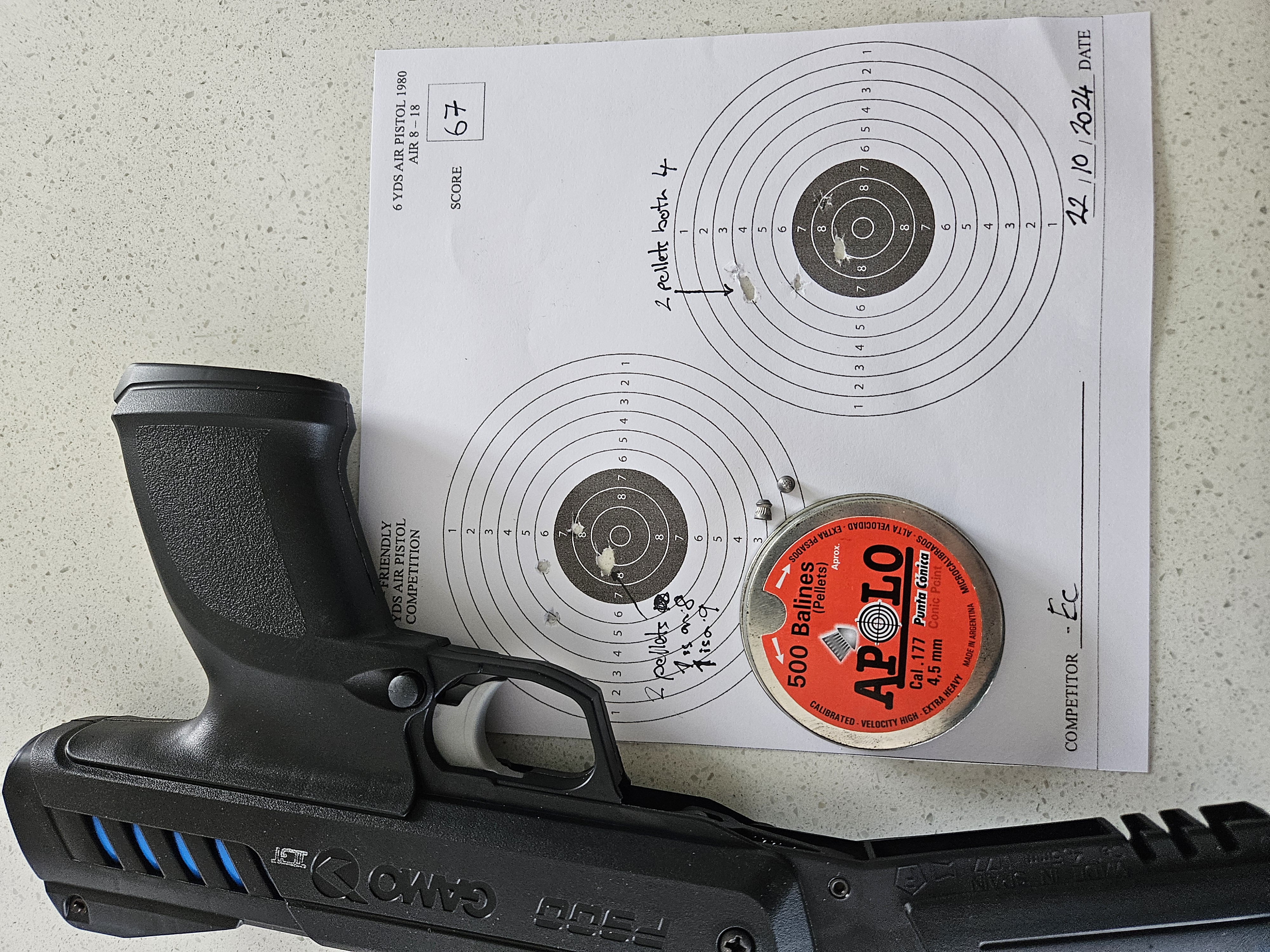 https://youtu.be/R46CUb8pNOI?si=kglInTUr55SRcVX2 I took up Nick's challenge at the end of the video and even found a pistol like his on TradeMe that I tried to buy, but gave up when it got to over $180. So I ended up buying a new Gamo P900 which was the cheapest new air pistol I could find. The Gamo seems to shoot better than the one in the video - just! LOL I would need to clean out some of the junk in the shed to get 6m but can just get 6 yards at present - so for now will stick with that. With the winds we have had today it would be a challenge to even get on the paper at 6 yards outside! At the end of the day, it's more about a bit of banter and trying to get better with whatever you have to shoot with than a serious competition. As far as I'm concerned Kruza you can shoot with whatever you've got at a distance you feel challenging - nothing wrong with having a "custom" class if it gets a few more people involved.
