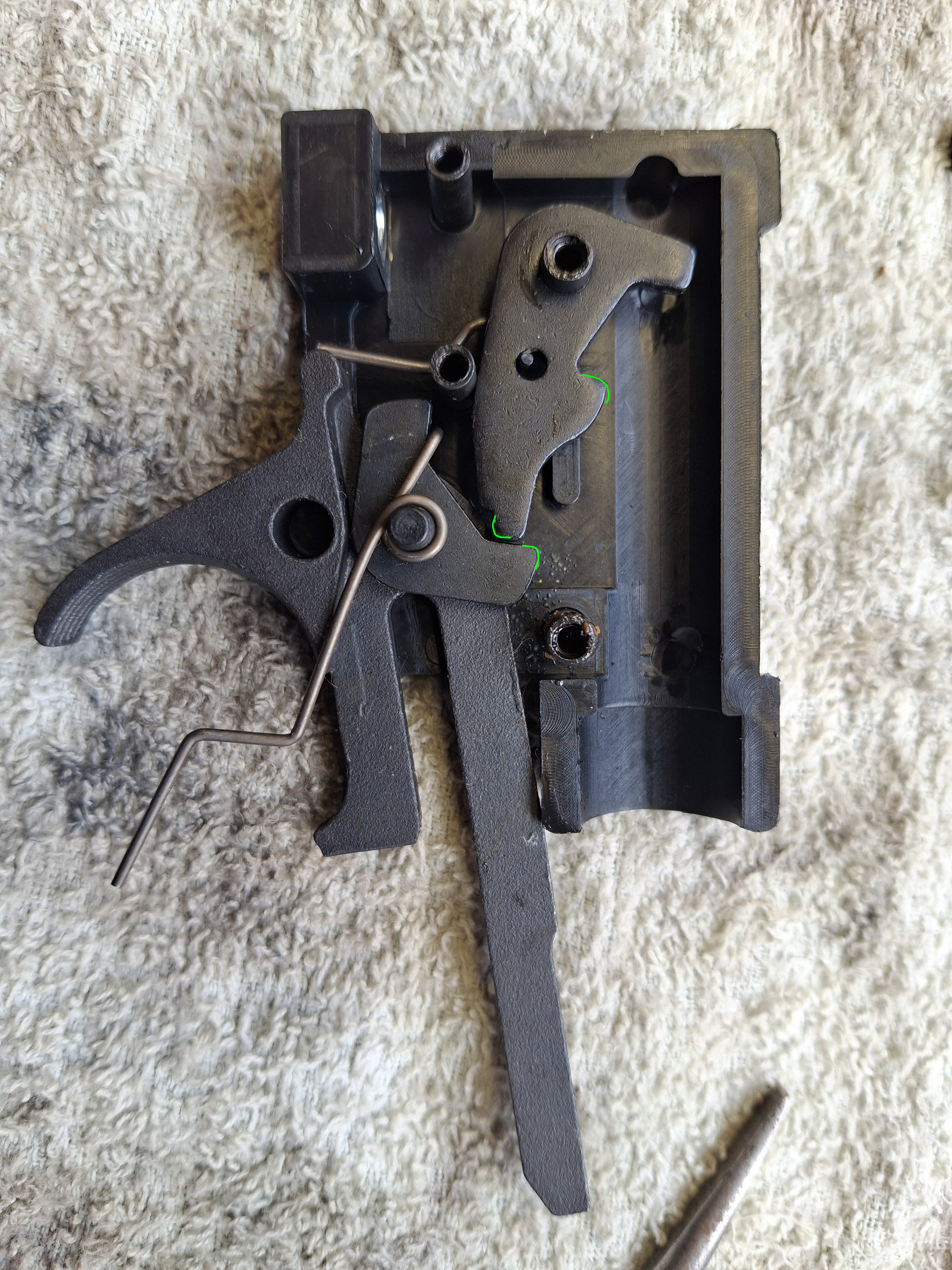 I bought a Crosman tyro as an upgrade for the kids, they currently have a crosman 760 multipump. Very small and light rifle, great for a starter for kids. The tyro is a Christmas present,so, to make sure its broken in, i put a few pellets through it, after 200, i still wasnt happy. The trigger, dieseling and lots of flyers with at best 100mm groups at 16m. I stripped it down, the trigger has lots of burs and twisted metal work, my fault for buying a Chinese made rifle, but i have a soft spot for crosmans. After much filing to square off and smooth out contact points, better lubrication, its working way better now. The piston grease smelled like normal petroleum grease, hence to constant dieseling im guessing. After cleaning everything off and relubing, reassembly. Back on the range, no dieseling at all now, smooth consistent trigger. After 40 or 50 shots, im now punching the same hole over and over. This is why i like crosman i think, low cost but with a little TLC, become a diamond. Green lines in photos are where the trigger needed work ![]() ![]() ![]() Edited by Daz-nz - 2 hours 48 minutes ago at 8:12pm |