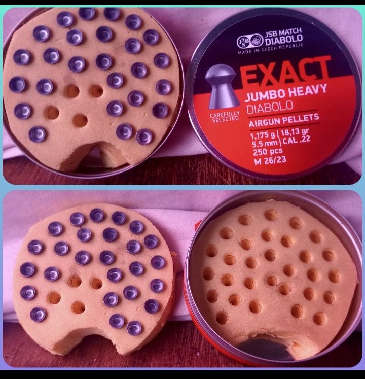 If you do end up single shot, heres how I set my tins up. Stops damage. Stops noise, makes pellets easy to grab and they are facing the same direction. Do not fall out. I walk around with lid off in my shirt pocket. Its camping sleeping mat that ive poked a soldering iron into repeatedly. Think its around 65 pellets from memory.